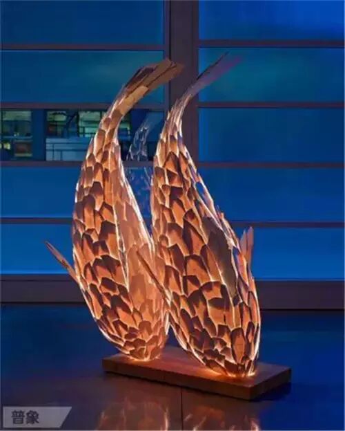 当金属丝串联起无数片美耐板,鳞片的组合让鱼体活跃,加上内发光装置,令作品兼具动感与美感。